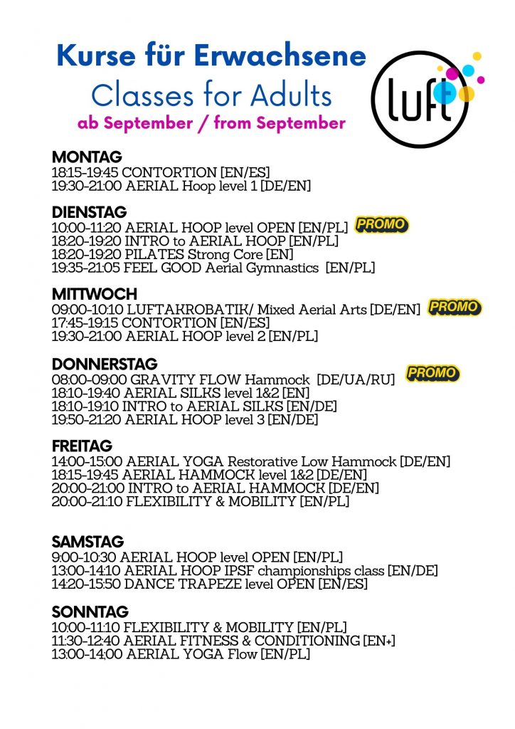 We’re updating our schedule this September with a wide selection of aerial and ground-based classes designed to make you strong, flexible, and happy.